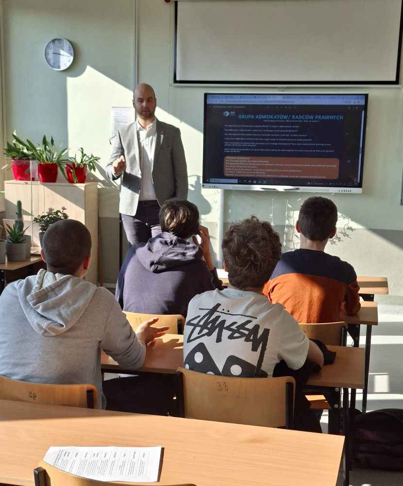 W ramach Dnia Edukacji Prawnej, w piątek, nasze liceum odwiedził wyjątkowy gość – radca prawny Mateusz Bartosiak.